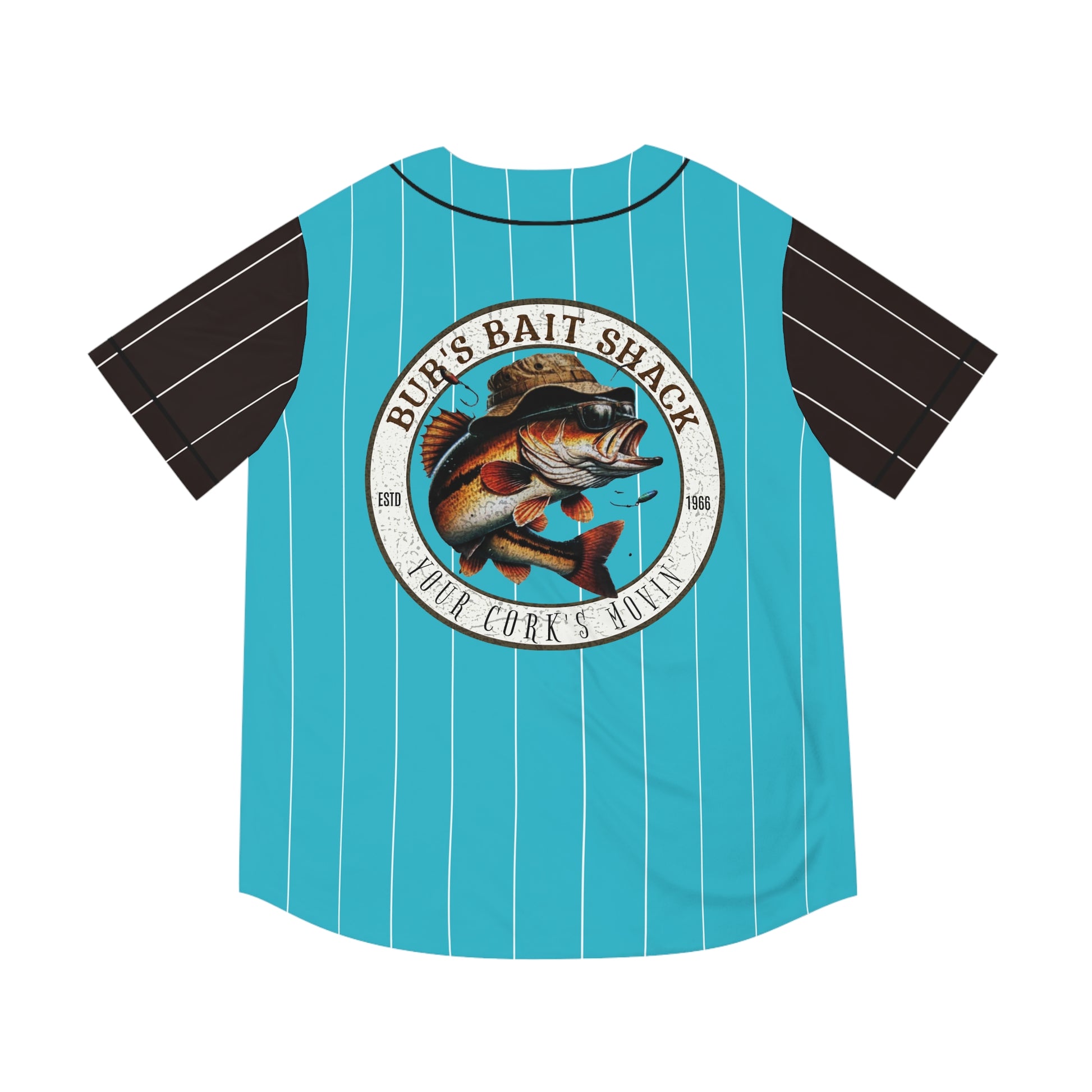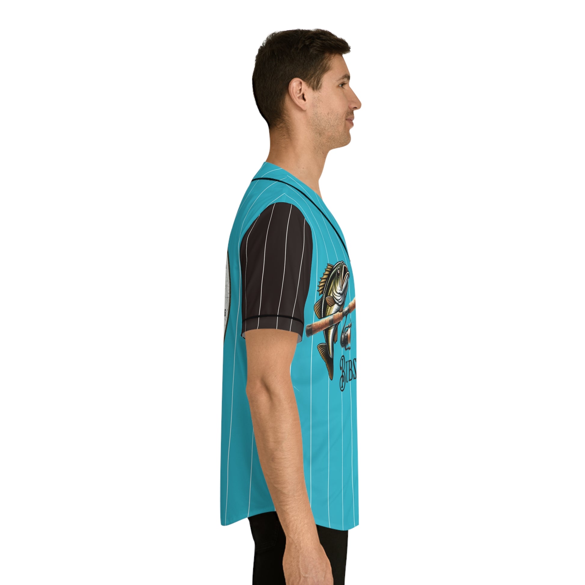Bass on the Rod Men's Baseball Jersey — Teal Aqua with White Pinstripe